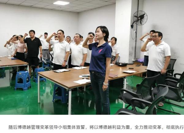 隨后博德越管理變革領(lǐng)導(dǎo)小組集體宣誓,將以博德越利益為重,全力推動變革,執(zhí)行決策,完成博德越使命,凝聚新力量,開創(chuàng)新未來。