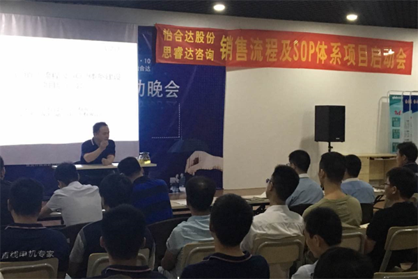 會議之初,謝總簡單介紹了本項目的背景及意義,強調(diào)了銷售流程與SOP體系建設對怡合達公司業(yè)務拓展、團隊復制的重要性和必要性。另外,謝總還著重提到,在尋找智業(yè)合伙伙伴過程中,前前后后見了4-5家咨詢公司,之所以最終選擇思睿達咨詢,看中的就是思睿達團隊的三個“實”: