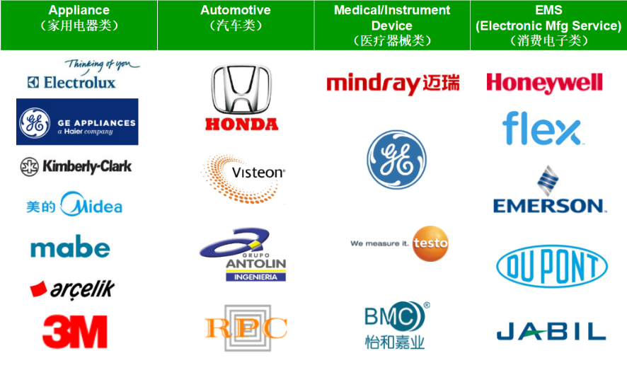 公司產(chǎn)品和服務(wù)廣泛應(yīng)用于醫(yī)療、家電、新能源、消費電子、交通工具、精密傳動等領(lǐng)域,客戶遍布全球,包括:深圳邁瑞、北京怡和嘉業(yè),德國博世、奔馳、寶馬,美國伊萊克斯、霍尼韋爾,日本本田、松下等世界五百強企業(yè),并與產(chǎn)業(yè)鏈國際巨頭企業(yè)結(jié)成緊密型戰(zhàn)略合作伙伴。