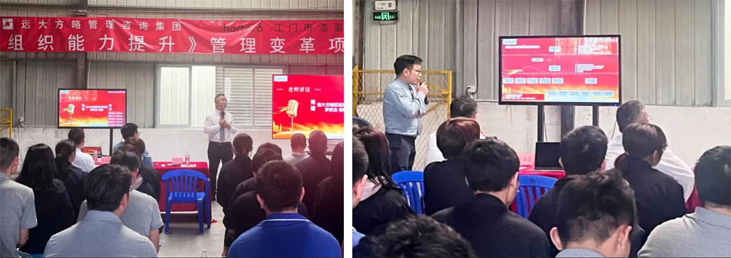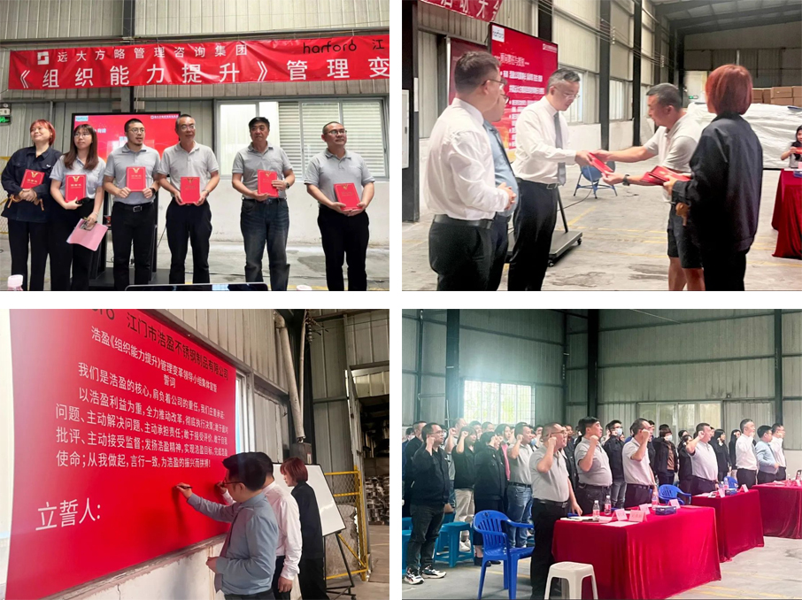 江門市浩盈不銹鋼制品有限公司(以下簡稱“江門浩盈”)攜手遠(yuǎn)大方略啟動《組織能力提升》咨詢項(xiàng)目,全方位提升組織能力,形成高效的運(yùn)營管理模式,持續(xù)提升公司生命力。