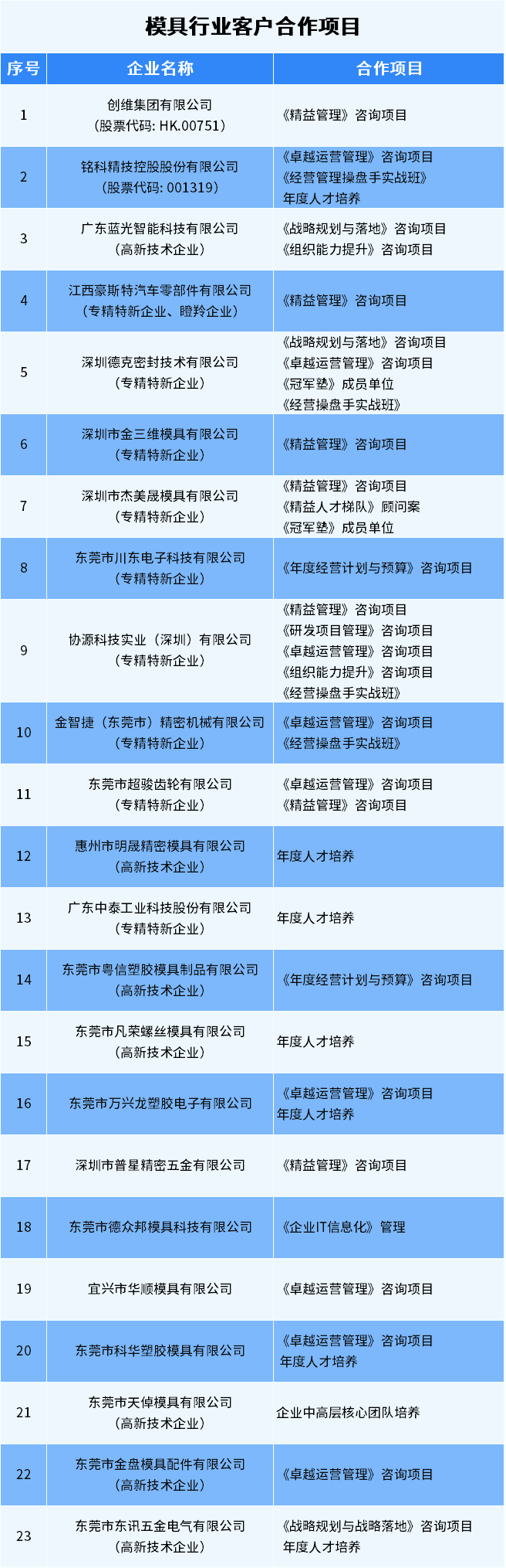 遠(yuǎn)大方略精準(zhǔn)剖析模具行業(yè)發(fā)展現(xiàn)狀和痛點,為眾多模具企業(yè)賦能,持續(xù)開展針對性咨詢項目: