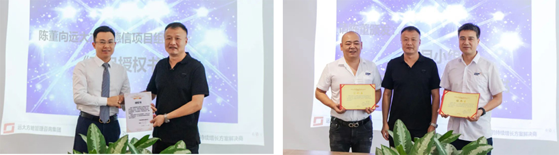 會上,陳董為遠(yuǎn)大方略項(xiàng)目組頒發(fā)了授權(quán)書,授予項(xiàng)目組相關(guān)管理權(quán)力;為項(xiàng)目相關(guān)負(fù)責(zé)人頒發(fā)任命書,全力推動變革。