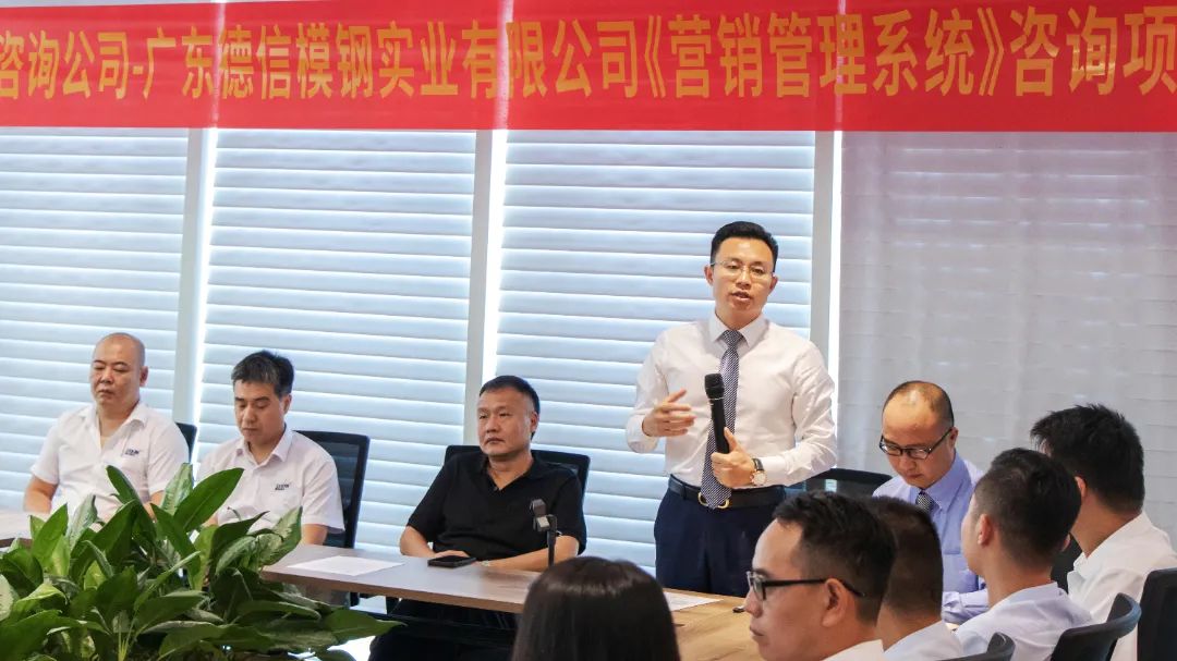 會議上,項(xiàng)目組老師首先向德信模架對遠(yuǎn)大方略的認(rèn)可表示感謝,老師強(qiáng)調(diào)營銷就是滿足客戶需求,達(dá)成企業(yè)目標(biāo);營銷始于用戶需求,終于用戶價(jià)值,營銷的本質(zhì)是為顧客創(chuàng)造價(jià)值,所以我們要構(gòu)建以客戶為中心的營銷團(tuán)隊(duì),搭建無論順境逆境都適用的營銷體系。啟動會上,遠(yuǎn)大方略項(xiàng)目組老師講解了項(xiàng)目計(jì)劃與實(shí)施方式,項(xiàng)目推進(jìn)以穩(wěn)定為前提,總體規(guī)劃,分步實(shí)施;中西結(jié)合,尊重傳統(tǒng),引進(jìn)科學(xué)管理機(jī)制。