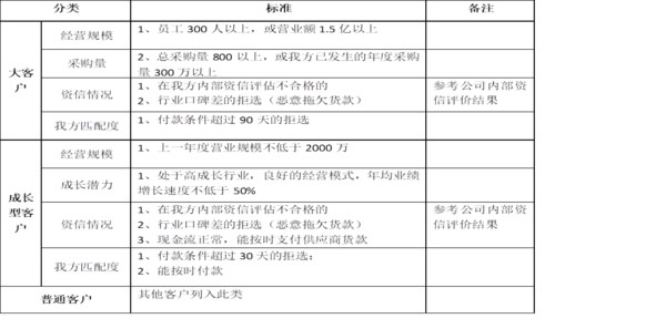 (4) 建立深圳市譽(yù)恒達(dá)科技有限公司客戶分類分級標(biāo)準(zhǔn),具體標(biāo)準(zhǔn)如下: