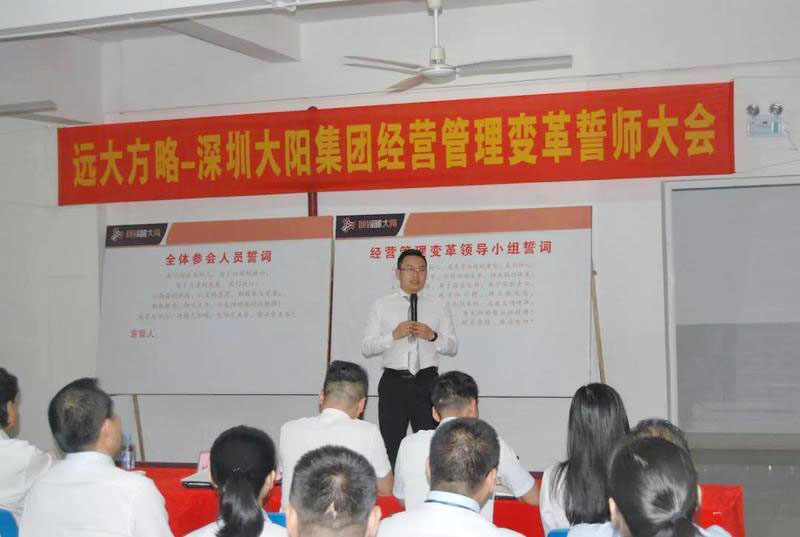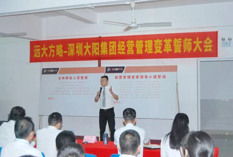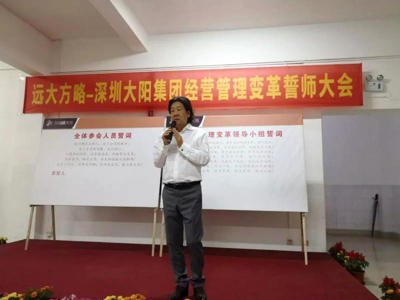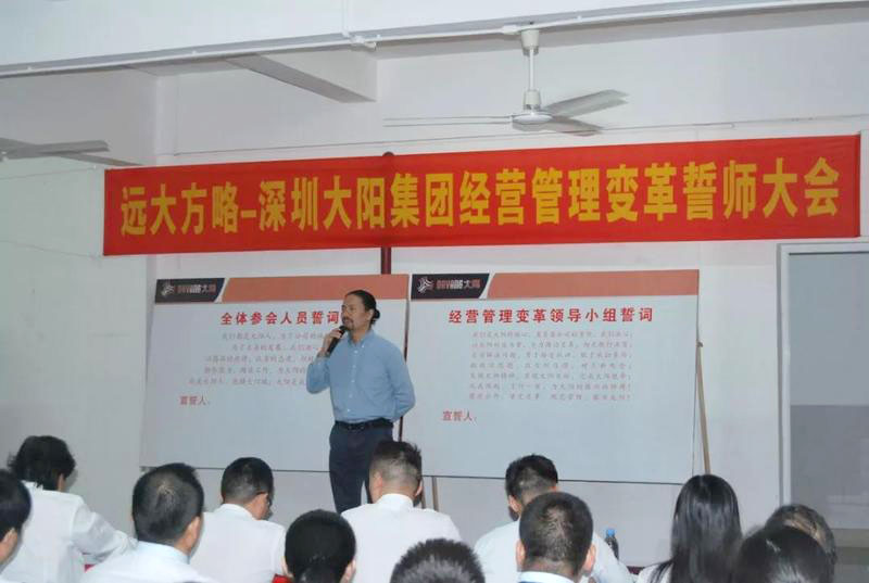 “誓師大會的召開標志著大陽集團調(diào)研工作的結(jié)束和大陽集團經(jīng)營管理變革工作的開始,企業(yè)管理變革只有開始沒有結(jié)束;企業(yè)管理變革會有一個痛苦的過程,不經(jīng)歷風雨怎么見彩虹,但痛苦之后一定會收獲喜悅;變革中我們需要相互精誠合作、統(tǒng)一方向、為完成變革使命全力以赴。”