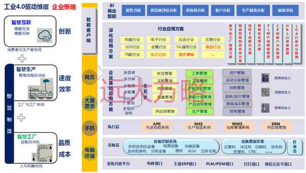 遠大方略科技智能制造事業(yè)部,具有制造業(yè)自主知識產權的國產自主軟件:ERP、MES、WMS、APS,并能與各主流ERP系統(tǒng)集成,打通企業(yè)內部信息系統(tǒng),并能與外部系統(tǒng)進行集成(CRM、SRM)