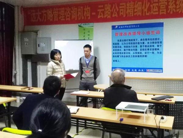 2018年1月9日,云路燈飾電器有限公司(以下簡稱“云路燈飾”)精細(xì)化運營管理咨詢項目全面啟動,攜手遠(yuǎn)大方略管理咨詢公司書寫企業(yè)經(jīng)營管理的新征程。遠(yuǎn)大方略咨詢師鄧發(fā)軍、寧岳華、宋世倦老師進(jìn)駐企業(yè)開展項目輔導(dǎo),云路燈飾核心管理骨干學(xué)員全程參與,研修企業(yè)精細(xì)化管理的智慧。