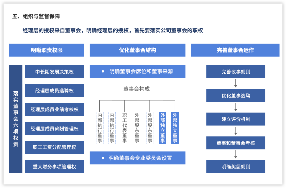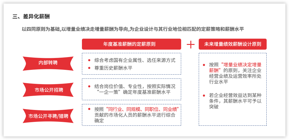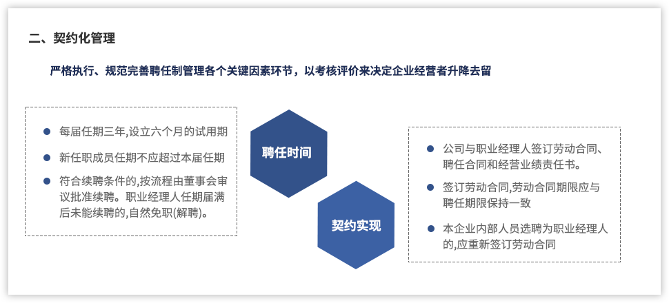 職業(yè)經(jīng)理人改革的核心目的是自上而下地為企業(yè)建立市場化的經(jīng)營機制和激勵約束機制,推動國有企業(yè)市場主體地位的落實,增強、釋放企業(yè)發(fā)展活力和潛力。遠大方略認為,職業(yè)經(jīng)理人改革是一個體系工程,其實施需要以公司治理結(jié)構(gòu)完善為先決條件,以人才發(fā)展體制機制改革為制度基礎,以契約化管理和有效的考核、激勵、約束機制作為保障,涵蓋戰(zhàn)略引導、治理機制、崗位價值、薪酬策略、激勵前設、契約管理等多個方面。