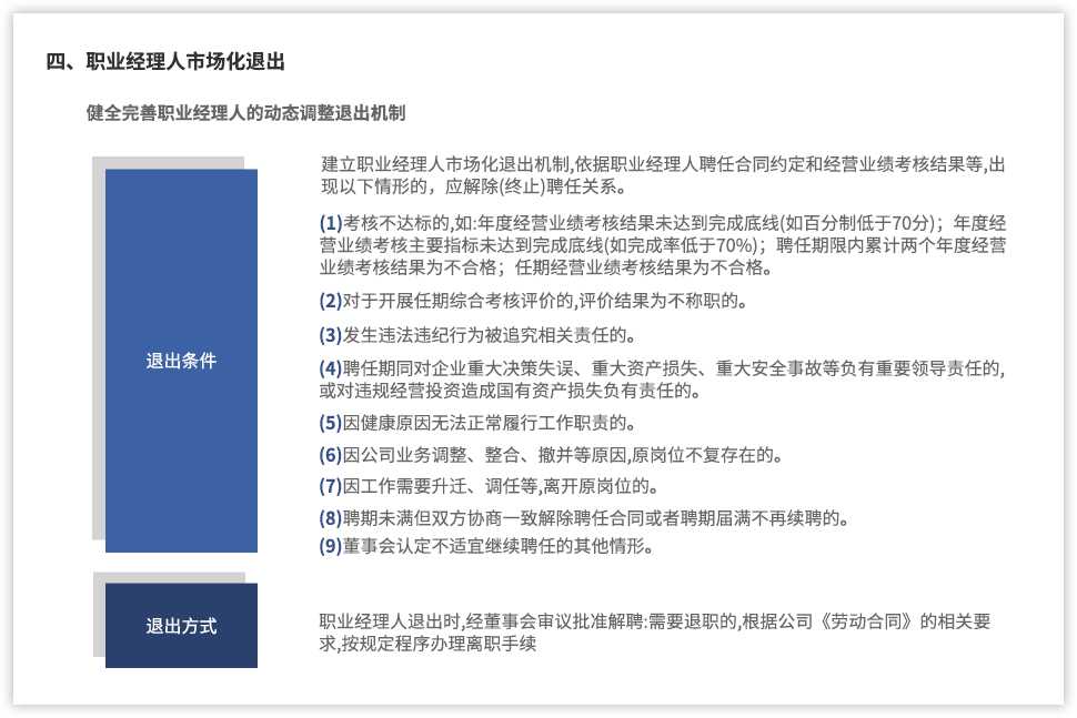 目前從中央到地方各層級政府均出臺了相關支持政策,部分重點企業(yè)也開展了相關試點改革,但在實際操作中卻普遍出現(xiàn)了職業(yè)經(jīng)理人“水土不服”、權(quán)責不清、目標不明、激勵不足等問題,制約了職業(yè)經(jīng)理人改革效果的發(fā)揮。