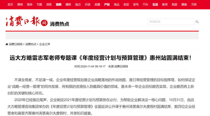 2020年已經(jīng)接近尾聲,企業(yè)制定2021年度經(jīng)營計劃與預(yù)算勢在必行,為幫助企業(yè)解決這一核心問題,10月31日,由遠(yuǎn)大方略管理咨詢集團(tuán)舉辦的《年度經(jīng)營計劃與預(yù)算管理》全國巡講公開課于惠州濤景高爾夫度假村結(jié)束,數(shù)百位企業(yè)經(jīng)營者和高管齊聚惠州濤景高爾夫度假村,共享知識盛宴。