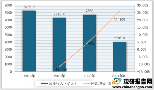 2018-2021年H1儀器儀表制造業(yè)營業(yè)收入及增速