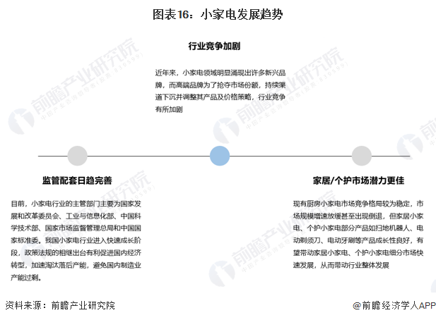 中國小家電行業(yè)發(fā)展歷史較久,產(chǎn)品早已走進(jìn)千家萬戶,從市場規(guī)模來看,雖總體規(guī)模不斷保持增長,但增速自2019年下降明顯。近年來,小家電領(lǐng)域明顯涌現(xiàn)出許多新興品牌,而高端品牌為了搶奪市場份額,持續(xù)渠道下沉并調(diào)整其產(chǎn)品及價格策略,行業(yè)競爭有所加劇。隨著中國居民消費品質(zhì)不斷升級,越來越多高附加值的智能化家居產(chǎn)品、個護(hù)產(chǎn)品得到市場的認(rèn)可,典型如近年來掃地機器人市場的快速爆發(fā)。展望未來,家居小家電、個護(hù)小家電細(xì)分市場有望進(jìn)一步快速發(fā)展,引領(lǐng)小家電行業(yè)規(guī)模取得突破增長。
