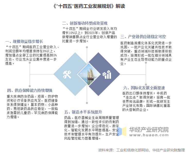 面對國內(nèi)外新形勢發(fā)展,為推動我國醫(yī)藥工業(yè)向創(chuàng)新驅(qū)動轉(zhuǎn)型,促進(jìn)我國醫(yī)藥工業(yè)高質(zhì)量發(fā)展,依據(jù)《中華人民共和國國民經(jīng)濟(jì)和社會發(fā)展第十四個(gè)五年規(guī)劃和2035年遠(yuǎn)景目標(biāo)綱要》,2022年1月30日,工業(yè)和信息化部等九部門聯(lián)合編制了《“十四五”醫(yī)藥工業(yè)發(fā)展規(guī)劃》。