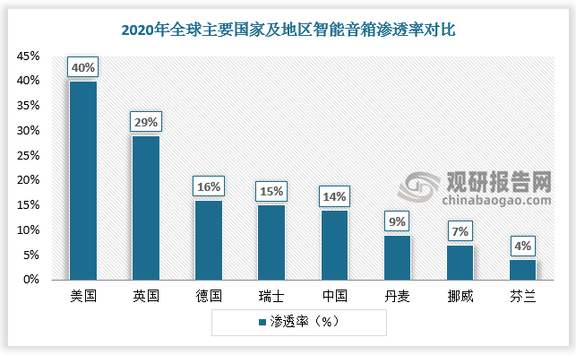 2017-2020年,國(guó)內(nèi)智能音箱市場(chǎng)零售額由4.9億元增長(zhǎng)至74億元,2021年H1我國(guó)智能音箱行業(yè)市場(chǎng)規(guī)模達(dá)46.5億元,較上年同期增長(zhǎng)30.6%,我國(guó)智能音箱進(jìn)入迅猛增長(zhǎng)階段。但從滲透率來(lái)看,2020我國(guó)智能音箱滲透率(14%)排名全球第五,銷售規(guī)模仍有較大的提升空間。未來(lái),隨著智能音箱廠商向下沉市場(chǎng)拓展,預(yù)計(jì)2023年我國(guó)智能音箱銷售額達(dá)到174.2億元。