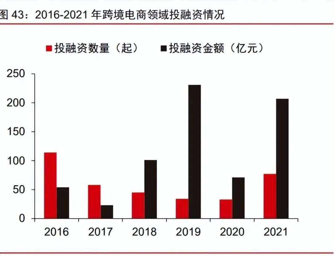 服務(wù)生態(tài)完備,全鏈路賦能跨境賣家。隨著跨境電商行業(yè)整體成熟度和專業(yè)度的提升, 以及行業(yè)競(jìng)爭(zhēng)的加劇,對(duì)賣家的綜合運(yùn)營(yíng)能力提出了更高的要求,跨境支付、代運(yùn)營(yíng)、營(yíng)銷推廣等跨境電商服務(wù)商應(yīng)運(yùn)而生。根據(jù)艾瑞咨詢,2021 年跨境電商領(lǐng)域投融資總金額 達(dá) 207 億元,其中服務(wù)商領(lǐng)域融資事件/規(guī)模占比分別為 65%/34.5%??缇畴娚谭?wù)商生態(tài)的繁榮,有助于增強(qiáng)跨境賣家面向海外市場(chǎng)的競(jìng)爭(zhēng)力。