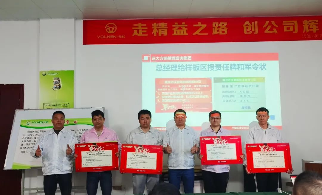 此次贛州沃能通過(guò)為期近半年的培訓(xùn)+輔導(dǎo),整體改善效果顯著。早會(huì)進(jìn)步明顯,形成了評(píng)分機(jī)制,在內(nèi)部營(yíng)造了比、學(xué)、趕、幫、超良好的工作氛圍;班組長(zhǎng)掌握了管理要訣,提升了管理水平;工作教導(dǎo)方法標(biāo)準(zhǔn)化,并落實(shí)到每位一線管理者;修訂了《整理整頓執(zhí)行標(biāo)準(zhǔn)》和《6S管理手冊(cè)》,沉淀了一套適合企業(yè)的金牌班組培養(yǎng)方法。