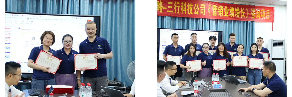 隨后,唐總為遠(yuǎn)大方略項(xiàng)目組頒發(fā)授權(quán)書,授予顧問老師項(xiàng)目管理權(quán),全權(quán)負(fù)責(zé)此次項(xiàng)目。同時(shí)余總也為項(xiàng)目推進(jìn)辦各模塊負(fù)責(zé)人以及項(xiàng)目核心成員頒發(fā)了聘書,明確崗位職責(zé),強(qiáng)化責(zé)任意識(shí)。