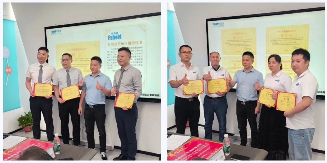 會上,黃總還為項目組頒發(fā)聘書和授權書,同時為項目改善小組頒發(fā)任命書,簽發(fā)軍令狀,明確目標,落實責任。最后,參會全體人員進行宣誓,堅定變革決心,全力推動改善,助力企業(yè)高質(zhì)量發(fā)展。