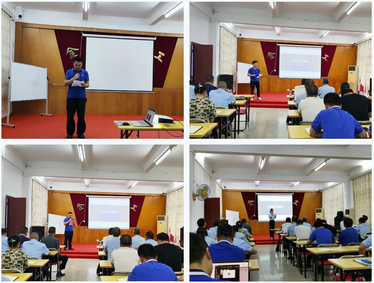 會議上,金雁電工公司精益生產管理項目6個改善小組也分別上臺,對一期工作開展情況及所取得的成效進行總結匯報。