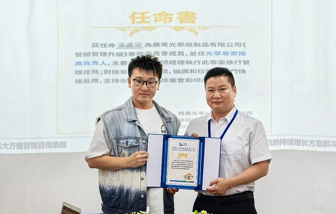 廣東光華紙制品有限公司(以下簡稱“廣東光華”)作為深耕行業(yè)多年的港資企業(yè),始終秉持“與時俱進”的拼搏精神,在半個多世紀的發(fā)展歷程中不斷突破自我。面對當下市場競爭的新挑戰(zhàn)與客戶需求的新升級,廣東光華主動求變,攜手遠大方略正式啟動《營銷管理升級》咨詢項目,旨在通過系統(tǒng)性的營銷體系優(yōu)化、專業(yè)能力的深度賦能,為企業(yè)注入發(fā)展新動能,助力企業(yè)突破瓶頸,實現(xiàn)可持續(xù)增長