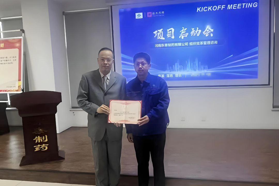 近日,河南東泰制藥有限公司(以下簡(jiǎn)稱(chēng)“河南東泰制藥”)攜手遠(yuǎn)大方略啟動(dòng)《組織優(yōu)化管理變革》咨詢(xún)項(xiàng)目,構(gòu)建更加科學(xué)合理的組織架構(gòu),提升跨部門(mén)協(xié)作能力,完善薪酬與績(jī)效體系,充分激發(fā)員工的工作積極性與創(chuàng)造力,全面優(yōu)化運(yùn)營(yíng)流程,降低內(nèi)耗、提升效率,構(gòu)建能夠支撐企業(yè)持續(xù)發(fā)展的組織能力,為企業(yè)的長(zhǎng)遠(yuǎn)發(fā)展奠定堅(jiān)實(shí)基礎(chǔ)。